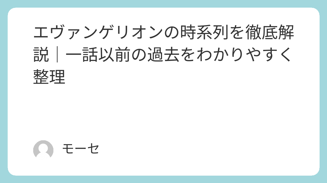今回は新世紀エヴァンゲリオンの時系列を、「一話以前の過去」に絞ってわかりやすく解説していきます。