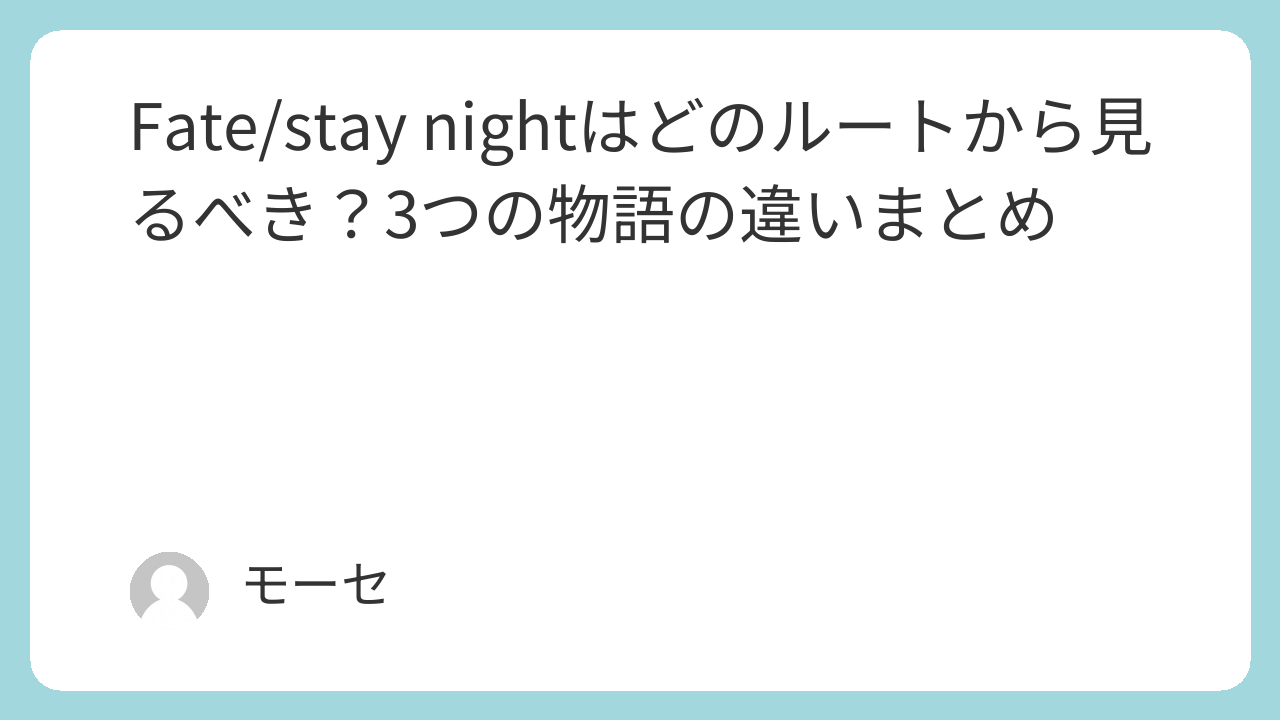 Fate/stay night はどのルートから見るべき? 無印・UBW・HFの違いを初心者向けに解説|モーセのアニメブログ